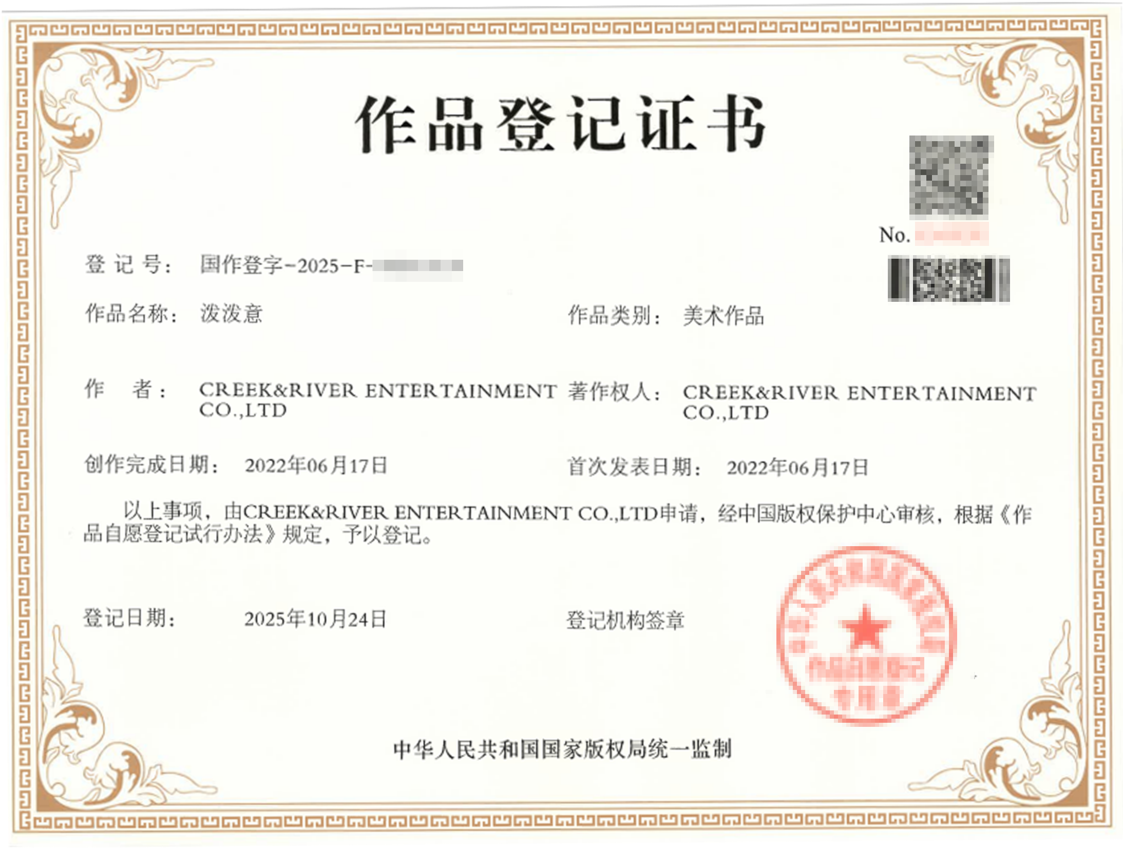 중국 국가저작권국 산하 중국저작권보호센터를 통해 저작권 등록을 공식 완료했습니다.