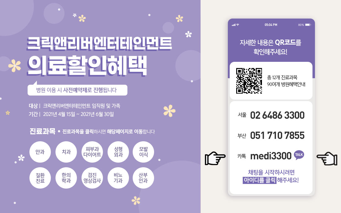 ( 크릭앤리버엔터테인먼트 임직원 혜택 확인 링크 : www.mediwelfare.net )