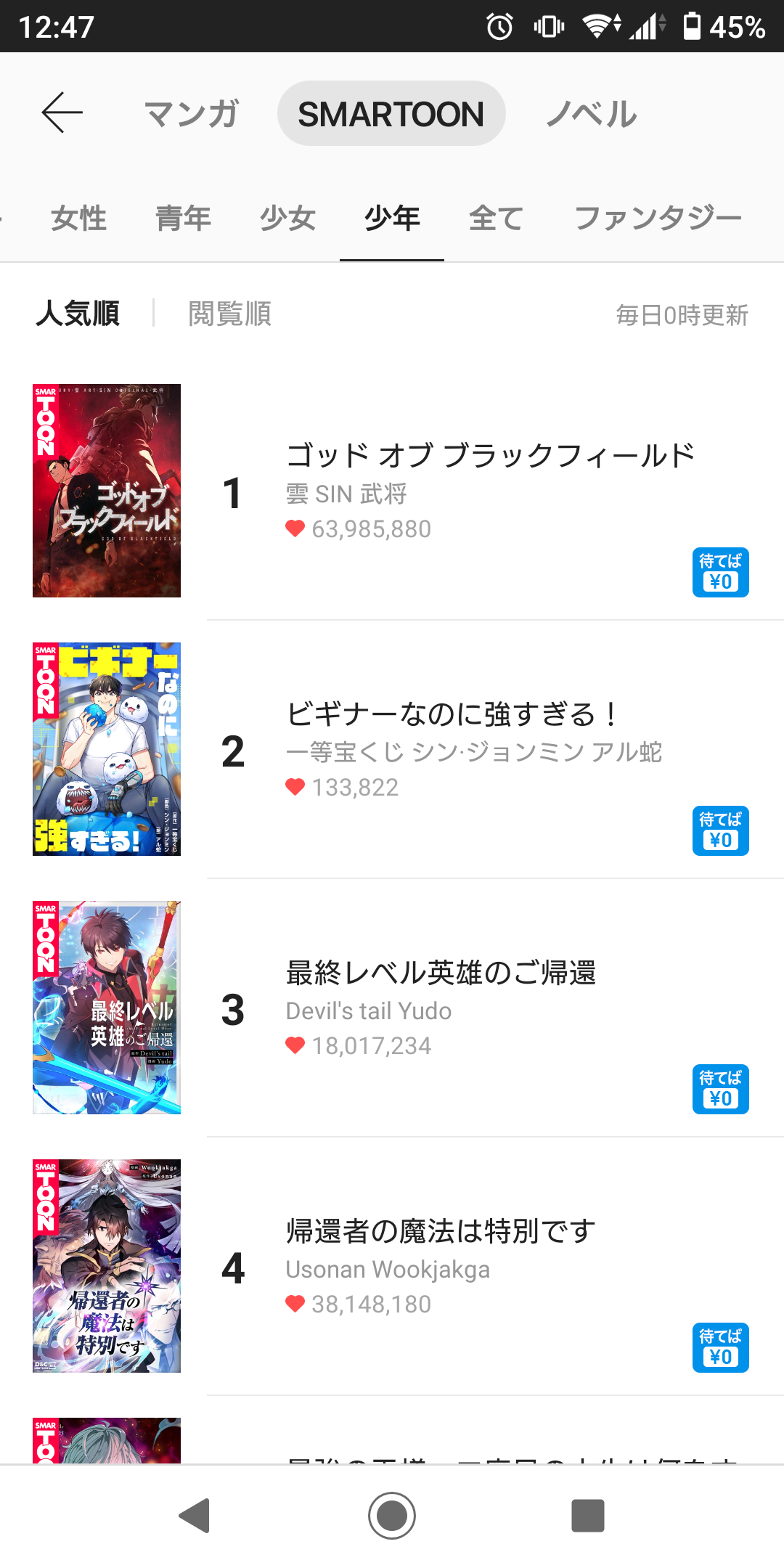 [1] 일본 Piccoma / SMARTOON / 판타지 장르 랭킹 1위 (2022.10.21)