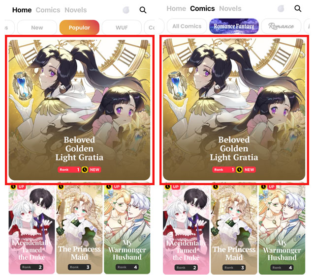 2024년 7월 7일 북미 타파스 론칭에서도 종합 및 장르 랭킹 각각 1위를 차지하였습니다.