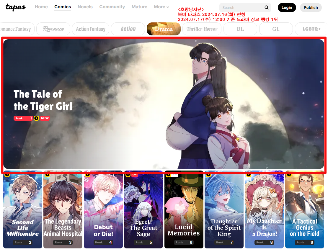 2024.07.16 북미 타파스에서 론칭한 <호랑낭자뎐>이