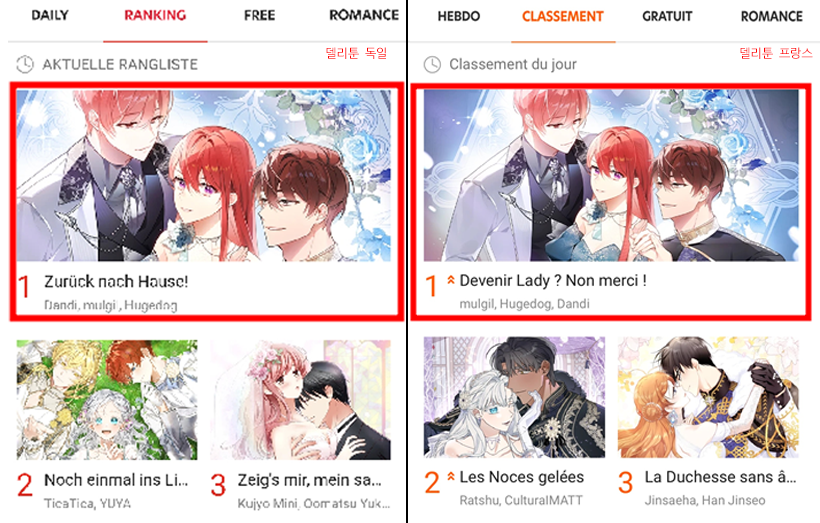 웹툰독일,프랑스 델리툰 론칭 <공녀고 나발이고 집에 간다고> 랭킹 1위