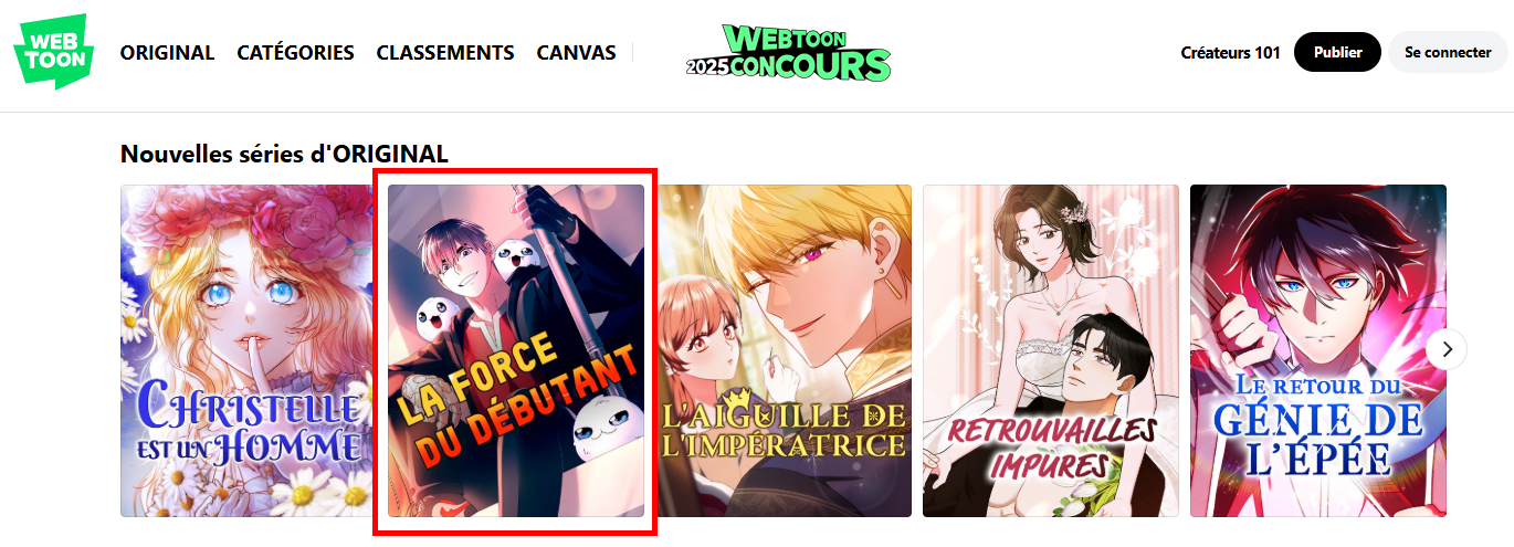 프랑스 라인웹툰 <새로운 오리지널 시리즈> 장르에서 상위권에 들며 좋은 반응을 얻고 있습니다. (2025.10.01 10:00 기준)